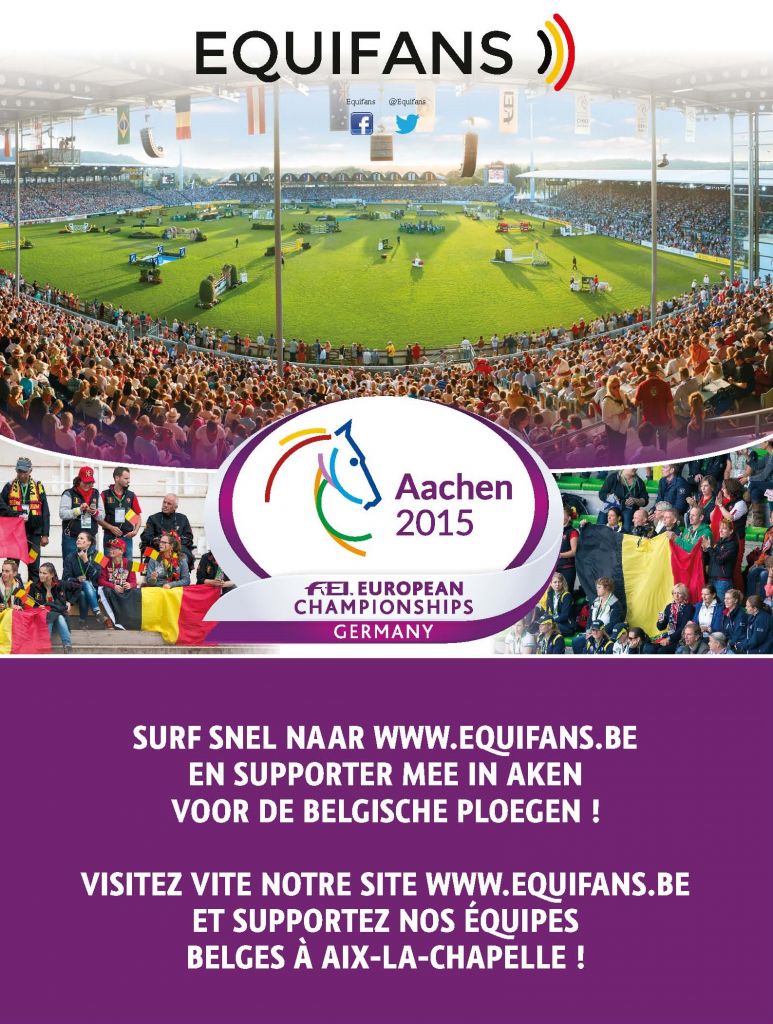 L’année passée, tous les regards d’Equifans étaient braqués sur les Jeux Equestres Mondiaux. Cette année, toute notre attention et celle de nos partenaires seront dirigées vers les Championnats d’Europe. Les Championnats d’Europe de saut d’obstacles, dressage, concours complet et dressage para-equestrian sont d’une importance capitale pour qualifier une équipe aux Jeux Olympiques et Paralympiques 2016 à Rio de Janeiro ! Par ailleurs, ce ne sont pas moins de cinq disciplines qui seront représentées lors des Championnats d’Europe Senior à Aix-la-Chapelle : Saut d’Obstacles, Dressage, Attelage, Reining et Voltige. Plus d’une bonne raison pour que l’équipe Equifans aille planter sa tente à Aix. Vous ne pourrez donc pas passer à côté d’Equifans et l’équipe sera également présente au Championnat d’Europe Senior de concours complet à Blair Castle ! Vous aurez bientôt des nouvelles à propos des stands Equifans à Aix et Blair Castle.