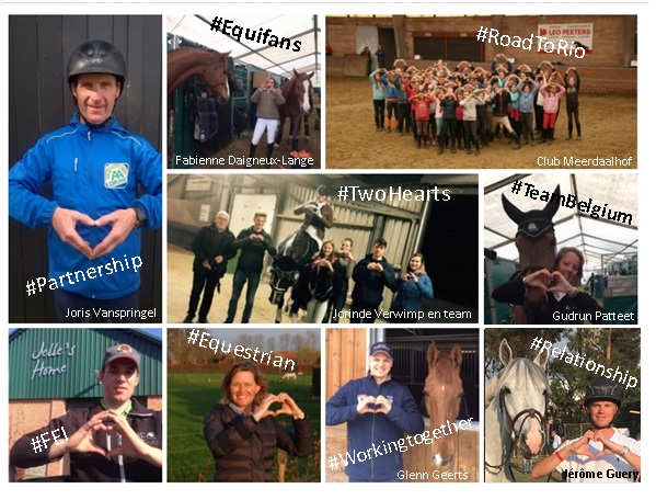 Prenez une chouette photo, postez-la sur Facebook/Twitter/Instagram en taggant Equifans et en ajoutant les hashtags suivants dans la description : #TwoHearts #Equifans #FEI #TeamBelgium et #RoadToRio.