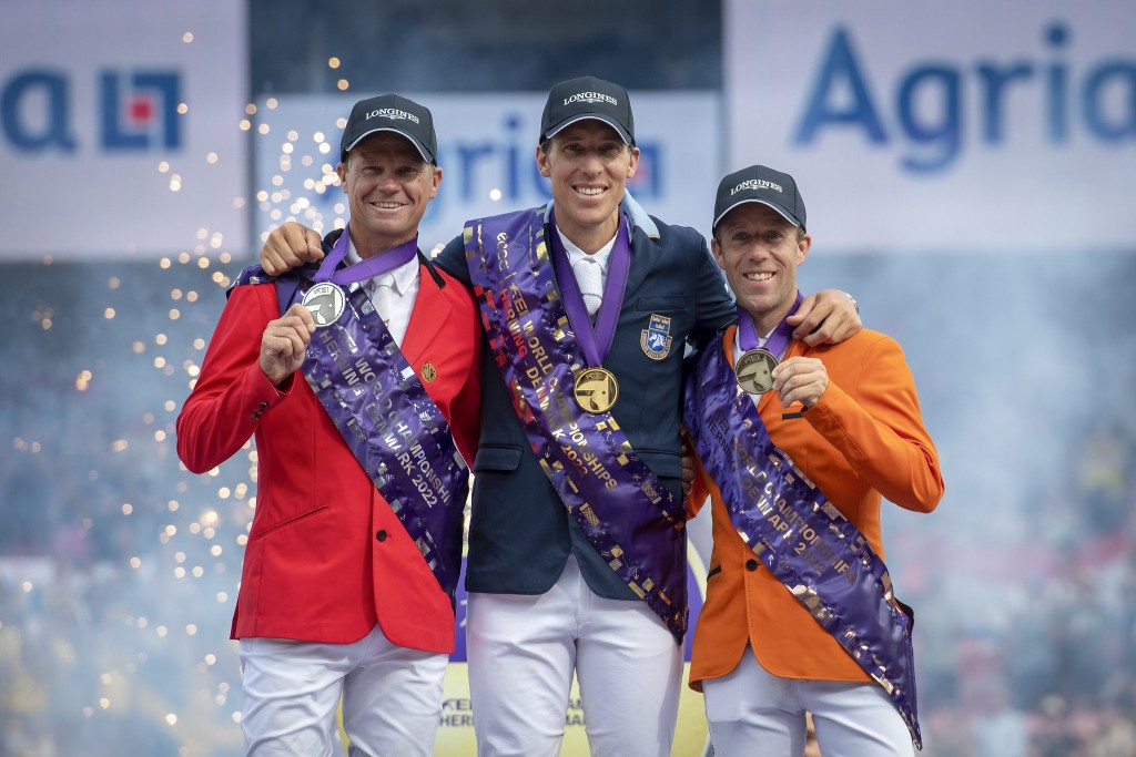 Jérôme Guéry (gauche) sur le podium individuel (© FEI / Leanjo De Koster)