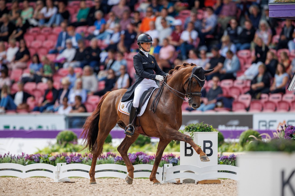 En dressage, la Belgique alignait une équipe composée de Charlotte Defalque, Lore Vandeborne, Domien Michiels et Larissa Pauluis. Ces deux derniers étaient déjà présents aux Jeux olympiques de Tokyo l’an dernier mais il s’agissait d’une première participation en championnat du monde seniors pour les 4 cavaliers ! Cette équipe s’est classée 13e au classement collectif et la 29e place de Larissa Pauluis et First-Step Valentin dans le Grand Prix leur a permis d’être le seul couple belge à accéder au Grand Prix Special. Le duo a de nouveau franchi la barre des 70% (71,353 %) dans cette deuxième épreuve et a terminé 27e. Une performance prometteuse quand on sait que First-Step Valentin n’a que 10 ans et participait lui aussi à son premier championnat du monde seniors !