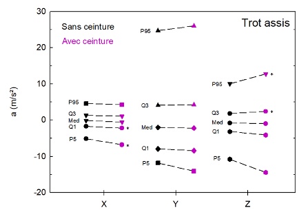 Trente cavaliers (le mot est utilisé de manière épicène), dont le niveau en dressage est compris entre 1 et le Prix Saint-Georges, ont participé à l’étude. Ils ont dû réaliser une reprise de dressage identique au trot assis et au galop, équipés d’un capteur inertiel mesurant l’accélération de la région lombaire, avec et sans ceinture lombaire souple. D’une manière subjective, les cavaliers lombalgiques ont effectivement perçu une diminution de leur douleur grâce à la ceinture lombaire souple. Toutefois, les chocs ressentis par tous les cavaliers, objectivés par l’analyse des accélérations, sont significativement plus importants lorsque ces derniers portent la ceinture. Ces chocs pourraient, à long terme, favoriser l’apparition de nouvelles douleurs. Qu’en conclure ?