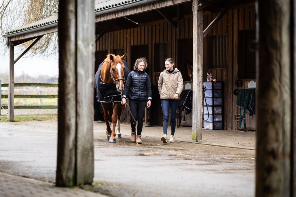 Une série de boxes, une piste extérieure de belle taille, des paddocks, un petit espace couvert,… Les lieux rassemblent tout ce qu’il faut pour prendre soin des chevaux et s’entrainer. « Nous sommes installés ici depuis l’été dernier et je ne regrette pas du tout », confie Sofia Taton. « Depuis que nous avons les chevaux à la maison, je parviens à mieux m’organiser et j’ai plus de temps à la fois pour l’école et pour les chevaux. Et puis sortir de la maison et les voir directement, c’est top ! »