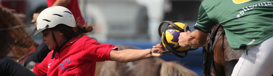 Les chevaux sont équipés de protections aux quatre membres et d'une selle équipée d'une sangle dite "de ramassage" reliant les étriers permettant au cavalier de se pencher sur le côté pour ramasser le ballon au sol. Le cavalier est quant à lui équipé d'un casque, d'éperons et de genouillères, les contacts étant fréquents.