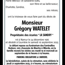 Ce dimanche, le monde équestre wallon a reçu un coup en pleine figure. D’abord incrédules, et ensuite envahis de tristesse, nous avons appris le brusque décès de Grégory Watelet, homme de cheval, gérant des installations de la Sandry dans le namurois, co-organisateur du concours international de Courrière avec le cavalier international quasiment du même nom Grégory Wathelet (une association de choc !), …