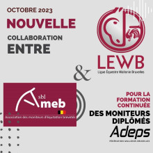 Lors de l’Organe d’Administration de la LEWB de la semaine dernière, les Présidents, Madame Joëlle Goeme (Association des Moniteurs d’Equitation Brevetés Asbl) et Monsieur Eugène Mathy (Ligue Equestre Wallonie Bruxelles Asbl) ont signé officiellement un nouveau protocole d’accord liant les 2 associations. Ce protocole délègue à l’AMEB une partie des formations continuées à l’attention des moniteurs diplômés Adeps.