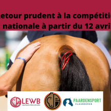 Aujourd'hui, le Comité de Direction de la FRBSE a examiné la question à son tour et a pris logiquement la décision suivante : la FRBSE ainsi que les ligues, la LEWB et Paardensport Vlaanderen, suivront les conclusions de la FEI et prolongeront l'arrêt des compétitions à tous les niveaux en Belgique jusqu'au 11 avril également.